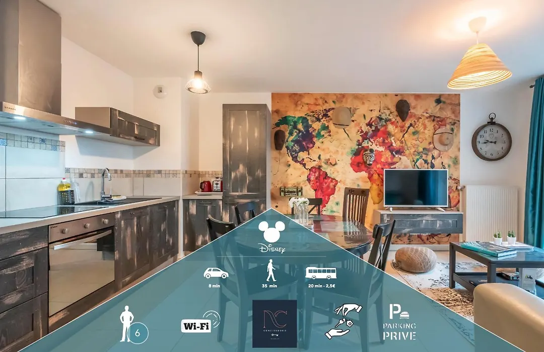 Az *Disneyland-Paris* 6Pers, Netflix, Wifi, Parking apartman kínál egy teljesen felszerelt konyhát, valamint szobákat ülősarokkal, TV-vel és Wi-Fi-vel. A Disneyland 3 km-re van az ingatlantól, míg a Bussy-Guermantes golfpálya 4 kilométerre található.